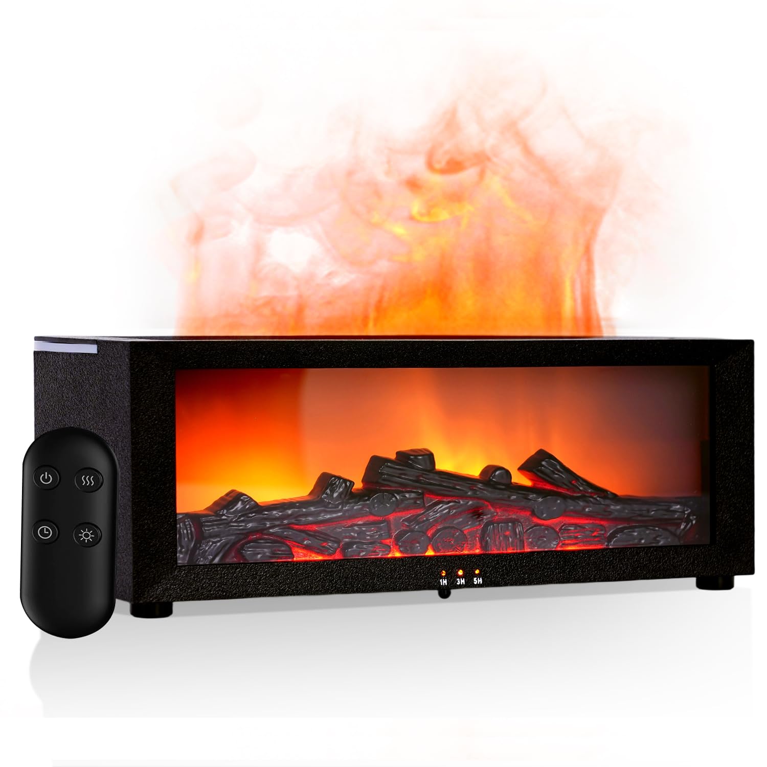 Transform any space into a relaxing and cozy environment. This air humidifier with essential oil diffuser combines silent ultrasonic technology with a realistic flame effect, creating a warm and elegant atmosphere for your home or office.